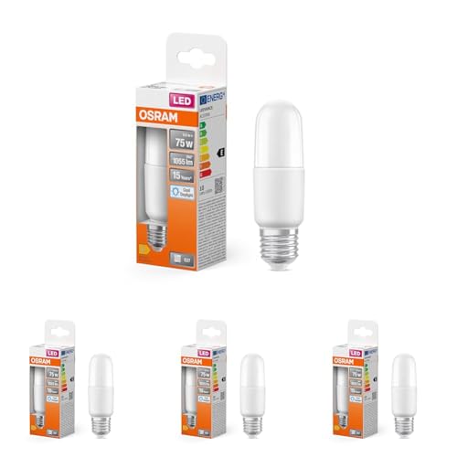 Osram LED Star Classic STICK, ampoule LED givrée en forme de bâton pour culot E27, blanc lumière du jour (6500K), 1050 lumens, remplace les ampoules classiques de 75W, pack de 1 (Lot de 4)