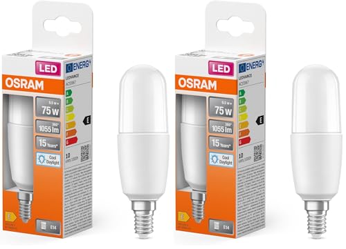Osram LED Star Classic STICK, ampoule LED givrée en forme de bâton pour culot E14, blanc lumière du jour (6500K), 1050 lumens, remplacement des ampoules classiques 75W, 1-pack (Lot de 2)