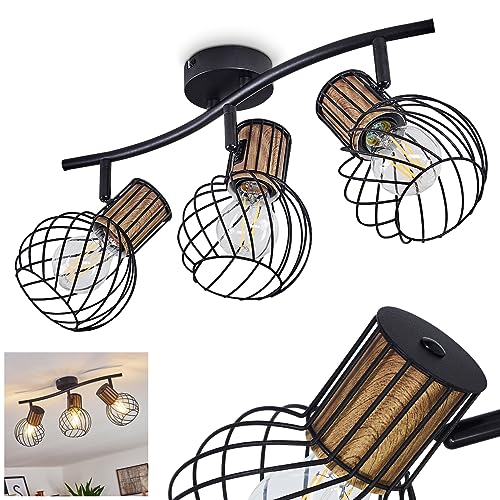 Plafonnier Koler en métal noir et bois, 3 spots vintages orientables créant un jeu de lumière au plafond, idéal dans un salon rétro, pour 3 ampoules E27, ampoule(s) non incluse(s)
