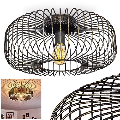 Plafonnier Wemude en métal noir/doré, aspect vieilli, abat-jour rétro-moderne créant un jeu de lumière au plafond, pour 1 ampoule E27, ampoule(s) non incluse(s)
