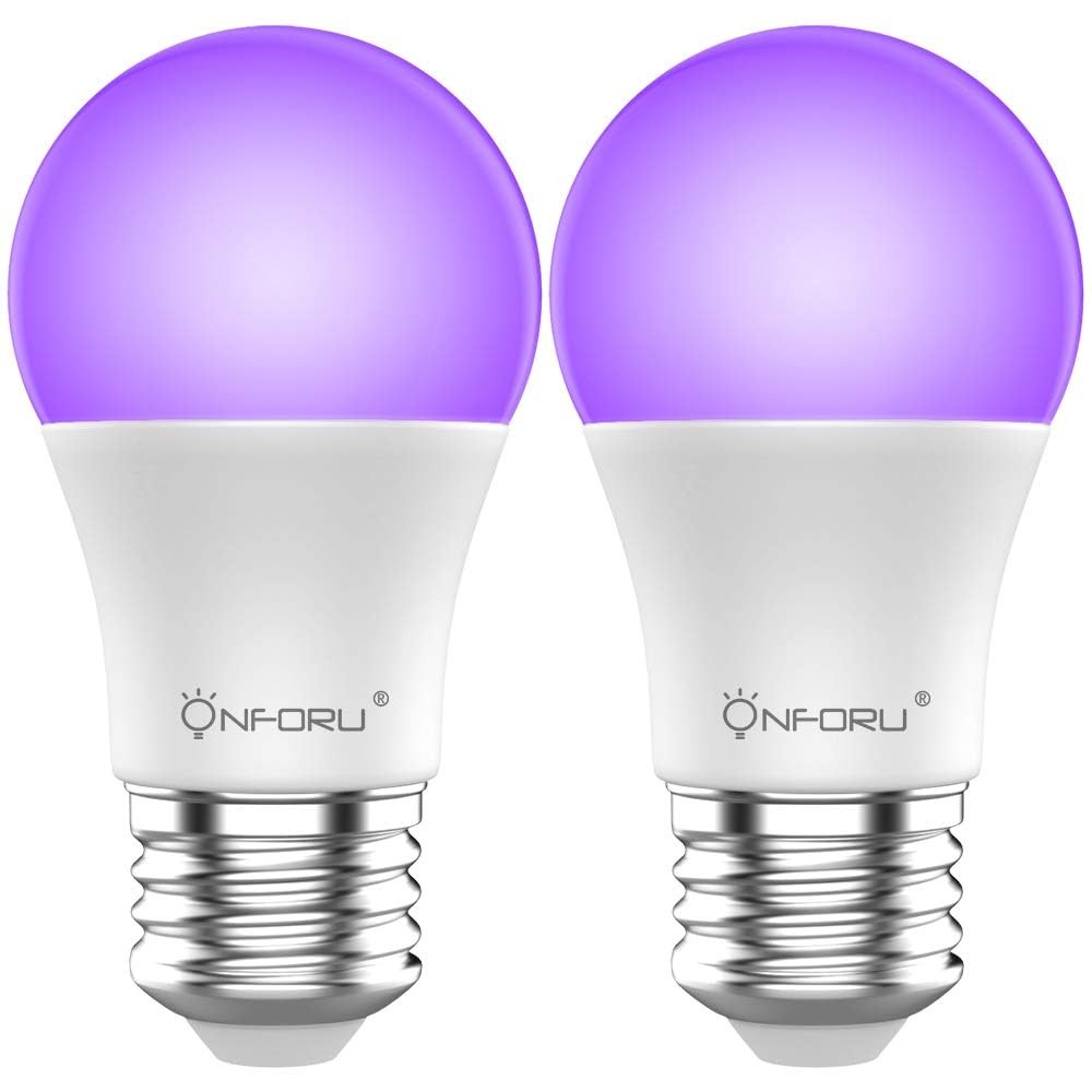 Onforu Lot de 2 Ampoule LED UV, E27 Ampoules Lumière Noire Lampe, 220-240 V Lampe LED Ultraviolet, UV-A Lampe de Ultraviolet Violette, Eclairage Décoratif pour Halloween Noël Bar Fête Peinture Fluo