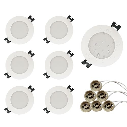 GY Lot de 6 spots LED encastrables avec douille GU10, IP65, pour salle de bain, cuisine, cadre de montage LED GU10, spot blanc rond, douille pour ampoule LED MR16, orientable à 35°
