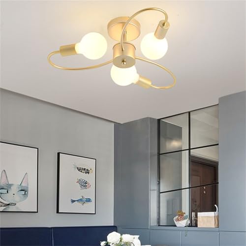 TZSMUM Luminaires de Plafond Ampoule E27 Plafonnier Vintage Lampes de Plafond Salon Aluminium Forme de La Fleur Lampe Suspension Pour Chambre Cuisine Salle à Manger Lampe Lustre (Or,3 Lumières)