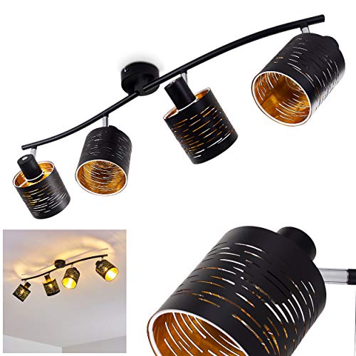 Plafonnier Bathinda, plafonnier en métal/plastique noir/or, 4 flammes, 4 x E14, spot design rétro/vintage, grille et effet lumineux au plafond, ampoule(s) non incluse(s)