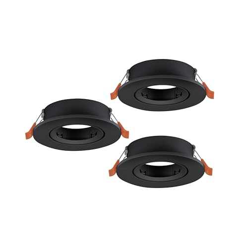 Eglo jeu de 3 spots encastrés Barranco, lampes à encastrer orientables, luminaires encastrables ronds, sans ampoule, éclairage de plafond en plastique noir, douille GU10, Ø 9 cm