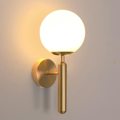 ZMH Applique Murale Couloir Intérieur Verre Chambre Éclairage Mural Doré Moderne Lampe de Couloir E14 Boule de Verre Rétro Éclairage Mural pour Escalier Lit Salon (sans ampoule)