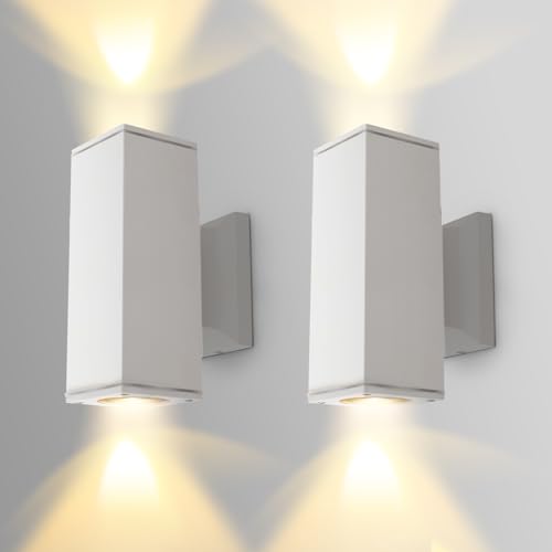 Aigostar Applique Murale Exterieur GU10 Aluminium Up Down Eclairage Exterieur,IP65 Étanche Lampe Murale Pour Jardin Couloir Entrée Patio, Ampoule non Incluse,Blanc,Paquet de 2
