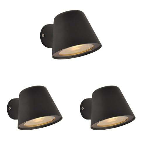 B·LED BARCELONA LED BarcelonaLED Applique Murale Extérieure Intérieur Spot IP44 Aluminium Noir Résistant Style Moderne avec Ampoule GU10 5W 2700K Blanc Chaud pour Patio Jardin (Lot de 3)