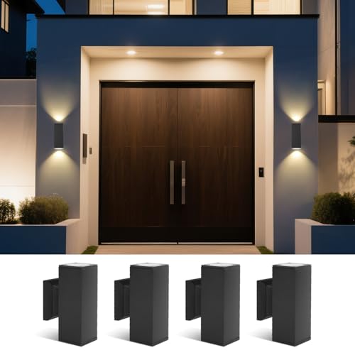 Aigostar Applique Murale Rectangle Intérieur et Extérieur, Lampe Murale Éclairage Haut et Bas, Douille GU10, Etanchéité IP65 pour Patios, Jardins, Couloirs, Porches, Ampoule non Incluse(Pack de 4)