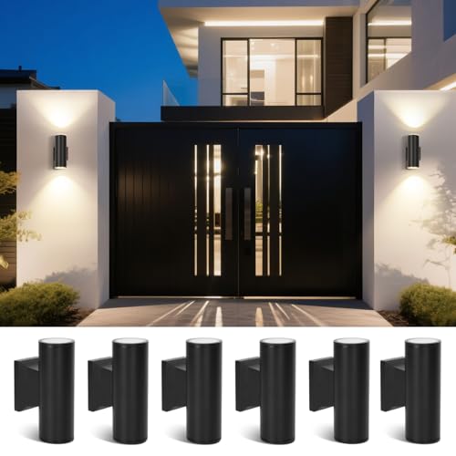 Aigostar Applique Murale Cylindrique Intérieur et Extérieur, Lampe Murale Éclairage Haut et Bas, Douille GU10, Etanchéité IP65 pour Patios, Jardins, Couloirs, Porches, Ampoule non Incluse(Pack de 6)