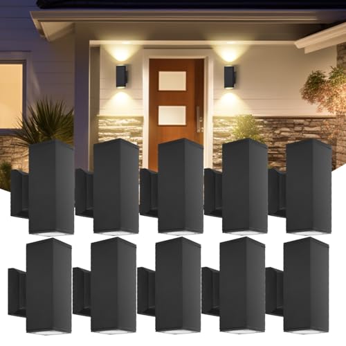 Aigostar Applique Murale Exterieur GU10 Aluminium Up Down Eclairage Exterieur 10 pièces, IP65 Étanche Lampe Murale Exterieur pour Jardin Couloir Entrée Patio, Ampoule non Incluse, Noir