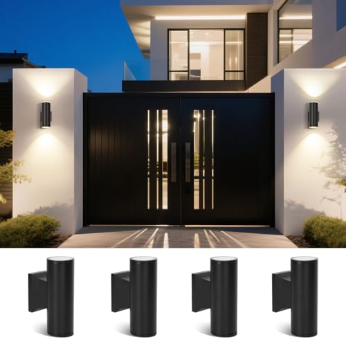 Aigostar Applique Murale Cylindrique Intérieur et Extérieur, Lampe Murale Éclairage Haut et Bas, Douille GU10, Etanchéité IP65 pour Patios, Jardins, Couloirs, Porches, Ampoule non Incluse(Pack de 4)