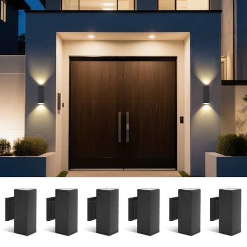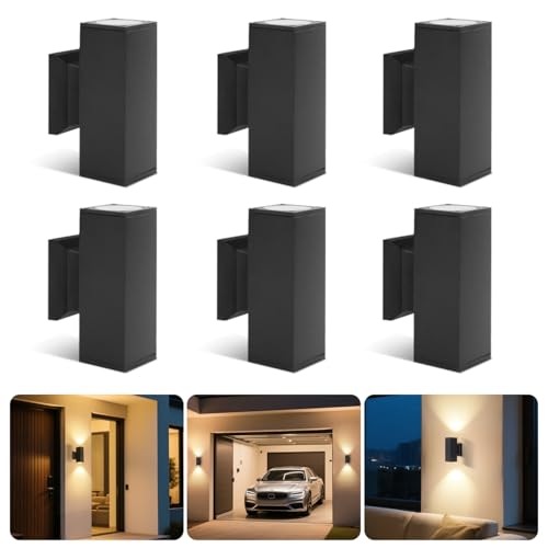 Aigostar Applique Murale Rectangle Intérieur et Extérieur, Lampe Murale Éclairage Haut et Bas, Douille GU10, Etanchéité IP65 pour Patios, Jardins, Couloirs, Porches, Ampoule non Incluse(Pack de 6)