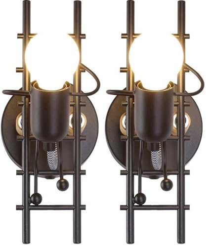 Aigostar Applique Murale Intérieure, Appliques Murales Chambre Vintage, Industriel E27 Base Lampe Murale Interieur pour Salon Coucher Couloir Porche, Lot de 2, sans ampoule