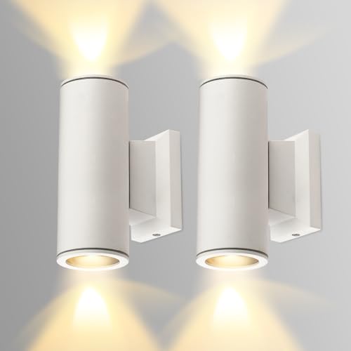 Aigostar Applique Murale Cylindrique Exterieur GU10 Aluminium Up Down Eclairage Exterieur, IP65 Étanche Lampe Murale pour Jardin Couloir Entrée Patio, Ampoule non Incluse, Blanc(Paquet de 2)