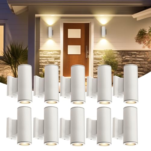 Aigostar Applique Murale Exterieur GU10 Aluminium Up Down Eclairage Exterieur 10 pièces, IP65 Étanche Lampe Murale Exterieur Pour Jardin Couloir Entrée Patio, Ampoule non Incluse, Blanc
