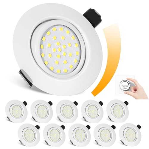 Spot LED Encastrable Dimmable,Extra Plat-25mm Blanc Spot Orientable ,Encastré Lampe 6000K Blanc Froid 5W 600LM Equi. 70W Ampoule Halogène Plafonnier Encastré,pour salle de bain, salon, boite de 10