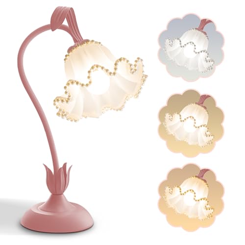 Lampe de table à fleurs, lampe de lecture LED, veilleuse vintage, 3 modes de couleur, lampe de chevet décorative, avec ampoule E27 pour salon, bureau, chambre à coucher, décoration d'intérieur (rose