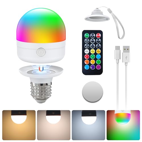 Ampoule Rechargeable USB-C Avec Télécommande, Ampoules LED E27 7W, Ampoule Rechargeable CCTRGB à Intensité Variable Avec Minuterie Et Batterie, Lampe De Secours D'Extérieur 2000mAh Avec Aimant, 1 Pack