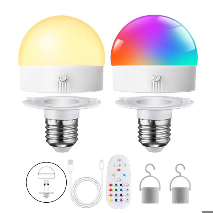 Ampoule rechargeable - Ampoule e27 connectée - Ampoule magnétique - RGB - 2500mAh -5W - Timing - Luminosité réglable - 2Pcs