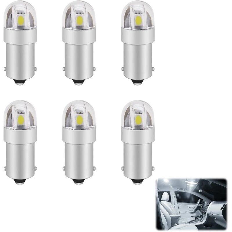 6 pièces Ba9s LED Ampoule, Ampoule LED Voiture, Veilleuse LE D Voiture, Blanc 12V L ED pour T11 1891 53 57 T4W, 6000K 47830 64111 3893 L ED V oiture