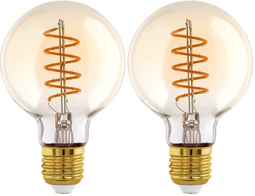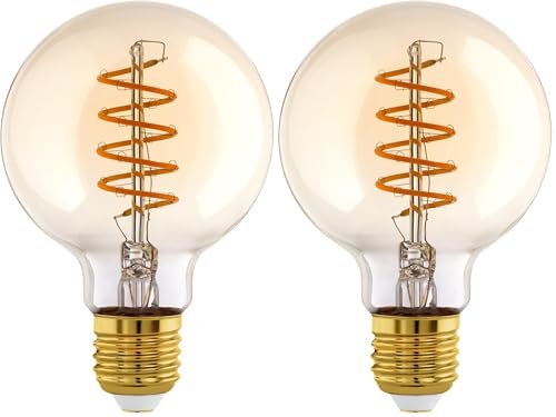 Eglo Lampe LED E27 à intensité variable, ampoule globe vintage spirale, éclairage rétro, 8 watts (équivalent à 60 watts), 806 lumens, blanc chaud, 2700 K, Edison G95, Ø 9,5 cm (Lot de 2)
