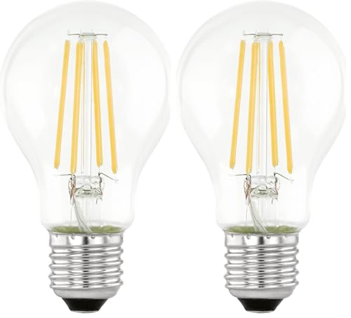 Eglo Lampe LED E27 à intensité variable, ampoule vintage spirale pour éclairage rétro, 8 watts (équivalent à 60 watts), 806 lumens, blanc chaud, 2700 K, Edison A60, Ø 6 cm (Lot de 2)
