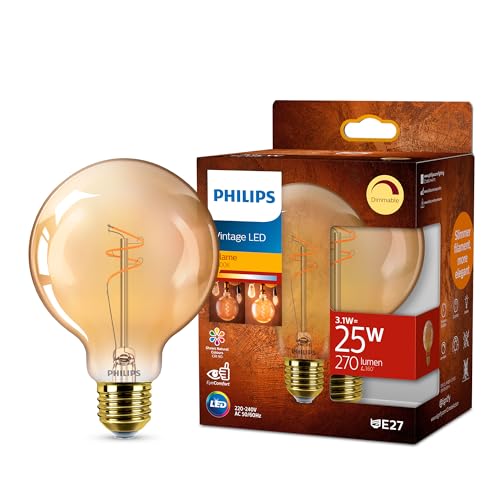 Philips Ampoule Vintage Amber Spiral G95, Dimmable, Sans scintillement, EyeComfort, 270 Lumen, Température 1800 K, 3.1 W=25 W, culot E27, Pack de 1
