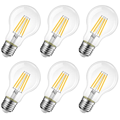 LVWIT 7.5W Ampoule LED Filament E27 A60, 1055Lm 2700K Blanc Chaud, Ampoule verre Vintage LED, Non Dimmable, Lot de 6