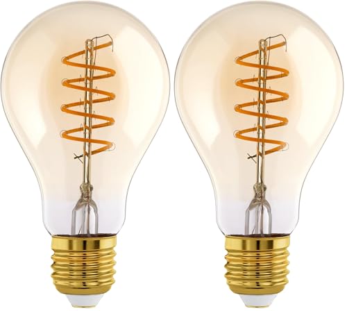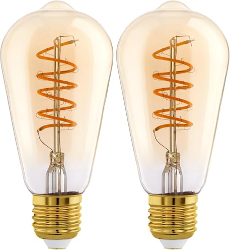 EGLO Lampe LED E27 à intensité variable, ampoule Edison vintage spirale, forme de tige, ambre, 4 watts (équivalent à 18 watts), 180 lumens, blanc chaud, 1600 K, T30, Ø 3 cm (Lot de 2)