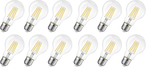 LVWIT 7.5W Ampoule LED Filament E27 A60, 1055Lm 2700K Blanc Chaud, Ampoule verre Vintage LED, Non Dimmable, Lot de 12