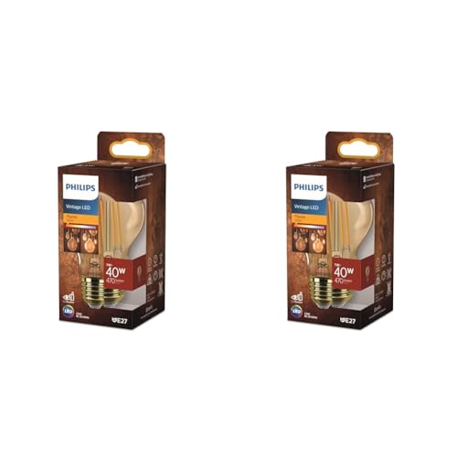 Philips ampoule LED vintage ambrée, 40W, culot E27, blanc chaud 1800K, non dimmable (Lot de 2)