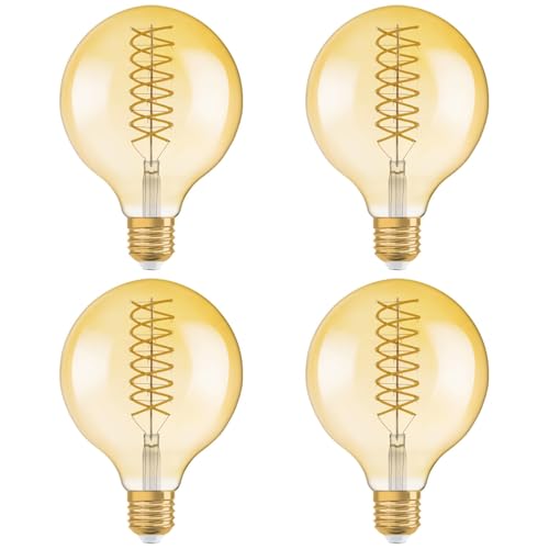 Osram Ampoule LED Vintage 1906® Classic GLOBE125 FIL 60, E27, dimmable, sphérique, or, 8,4W, 806lm, 2400K, lumière blanc chaud réduite, faible consommation, longue durée de vie,4-Pack