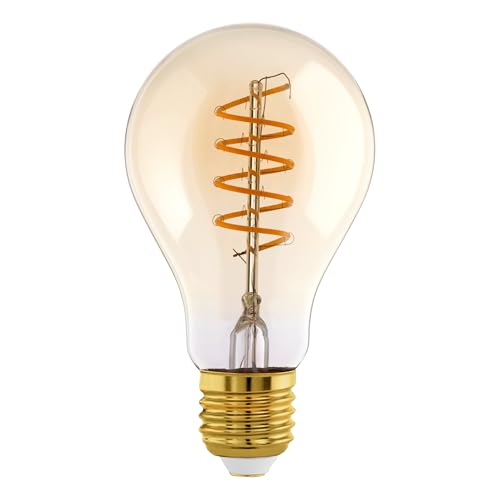 EGLO Lampe LED E27 à intensité variable, ampoule Edison vintage spirale, forme de tige, ambre, 4 watts (équivalent à 18 watts), 180 lumens, blanc chaud, 1600 K, T30, Ø 3 cm
