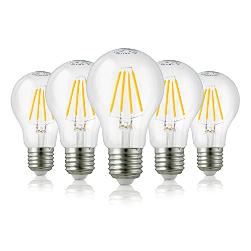 LVWIT 6.5W Ampoule LED Filament E27 A60, Equivalent à Ampoule halogène 60W, 806Lm 2700K Blanc Chaud, Ampoule Vintage, Non-Dimmable, Lot de 6