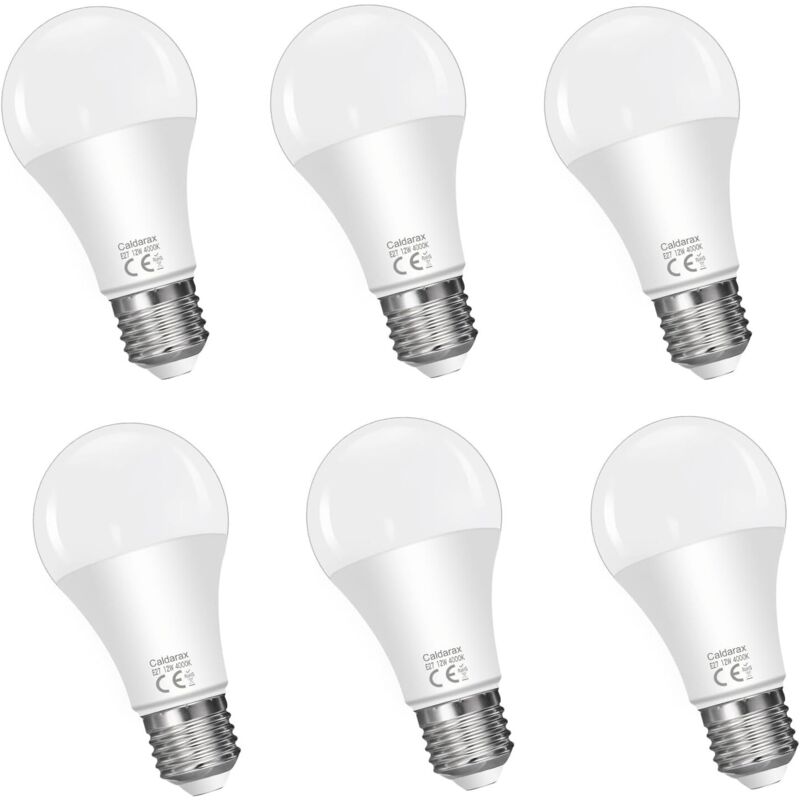 Lot de 6 Ampoule LED E27 12W Blanc Neutre 4000K, Équivalent 100W Incandescence, 1200lm, Ampoule Edison A60 Gros Culot à Vis, AC 175V-265V, No Dimmable, pour le Lampadaire, l'applique Murale