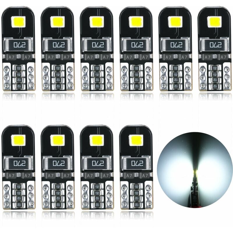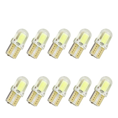Lot de 10 Ampoules COB 8SMD W5W T10 194 168 pour Feux stationnement, gabarit automatiques, Plaque d'immatriculation Blancs Brillants en silice CANBUS