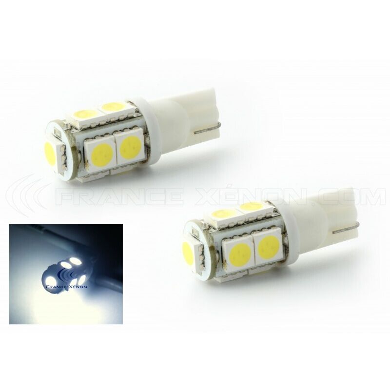2 x AMPOULES 9 LEDS BLANCHES - LED SMD - 9 led - T10 W5W 12V