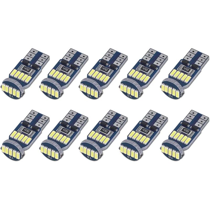 ZVD-Lot de 10 Ampoules LED T10 W5W Canbus Sans Erreurs 15pcs SMD 4014 Lampes LED Voiture 194 168 2825 Blanc 6000K pour Eclairage Intérieur, Eclairage