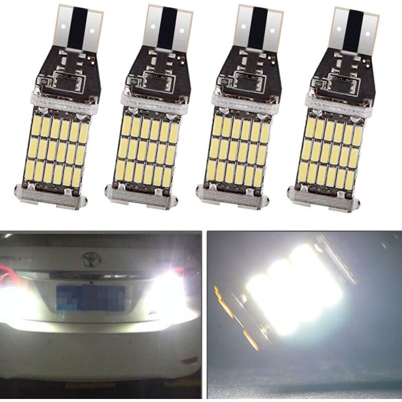 4-Pack extrêmement Lumineux 900LUMS, 12V Blanc 921 912 906 T15 4014 45-SMD W5W LED Ampoule de Feux de Voiture Remplacement Ampoules Sauvegarde Verso