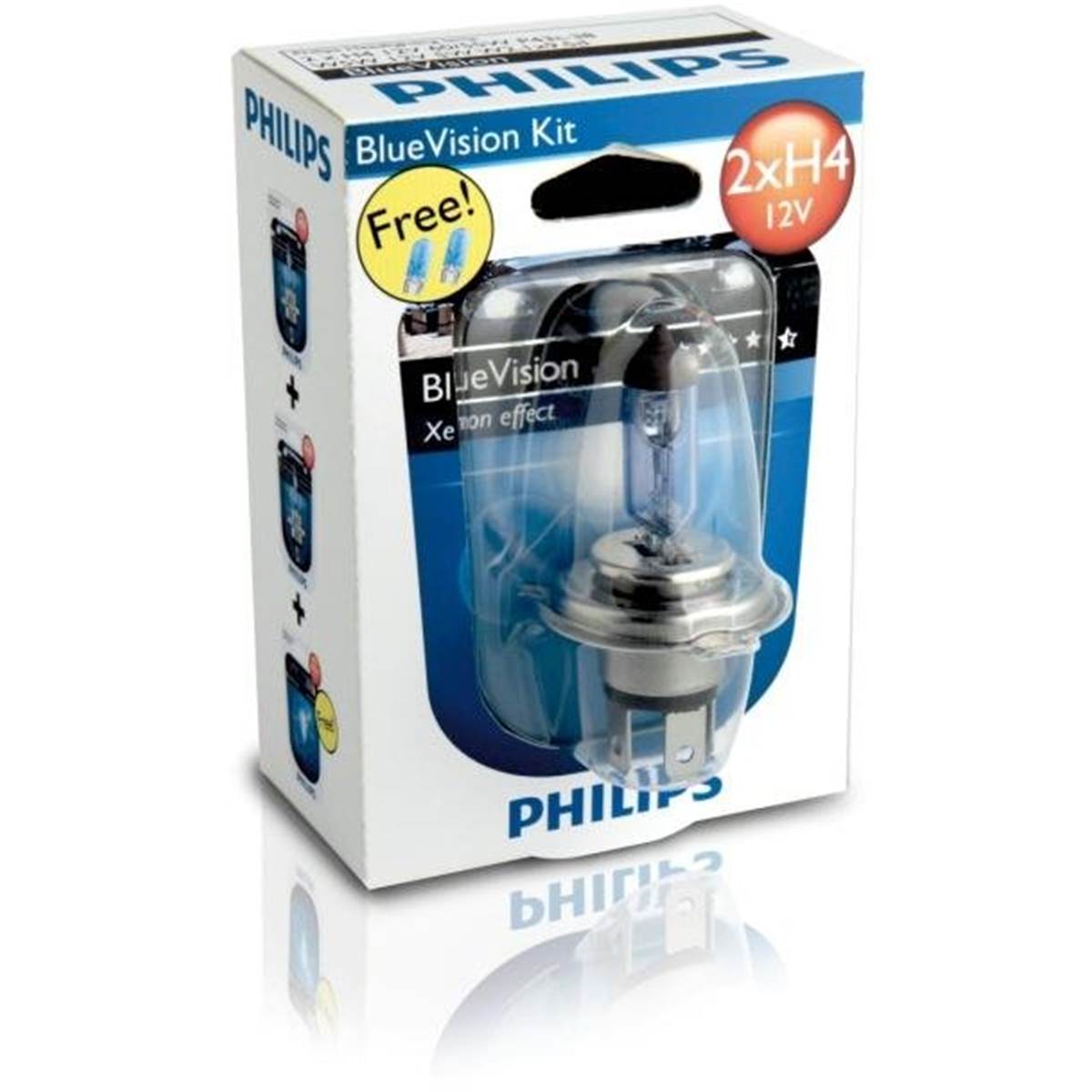 Ampoules (2 pièces) Philips H4 Blue Vision + Ampoules (2 pièces) W5w