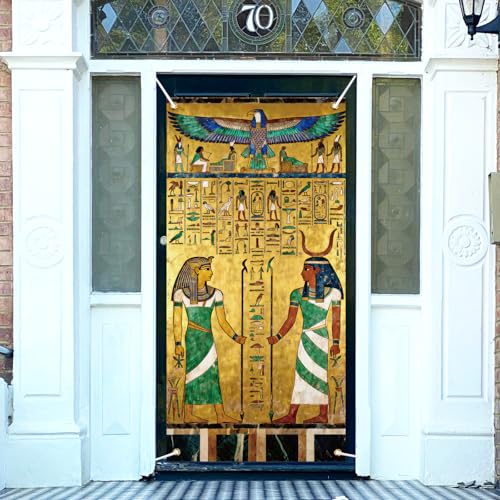 arricraft 1 PC Couverture de porte en polyester égyptien ancien, 72,83 "x35,43" Hiéroglyphe Pharaon Motif Fond Bannière Porte Porch Signe Fond de photographie pour la décoration de la maison de fête