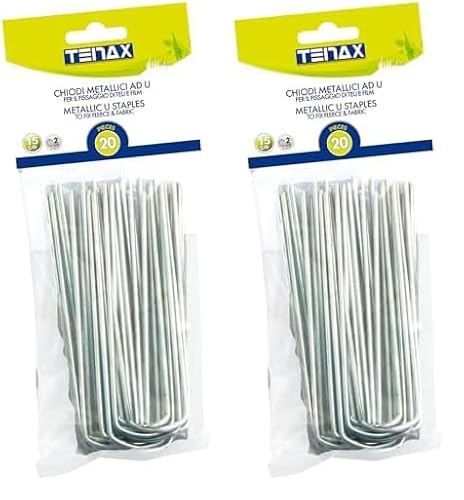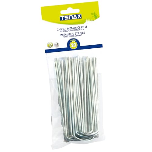 Tenax Agrafes U (20 pièces), Longueur 15 cm, Clous Métalliques en Forme de U pour Ancrage au Sol des Toiles de Paillage et des Voiles de Protection pour Cultures, Argent (Lot de 2)