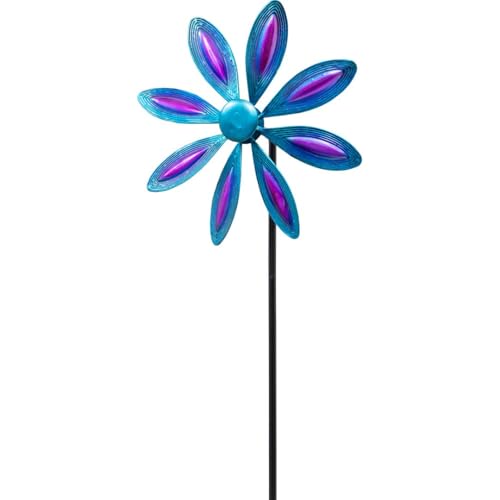 Kinetic Art Moulin à Vent en métal à roulement à Billes - Moulin à Vent avec ancrage au Sol - Résistant aux intempéries - Stable - Idéal pour la terrasse et Le Jardin (Flower Purple-Blue, Simple)