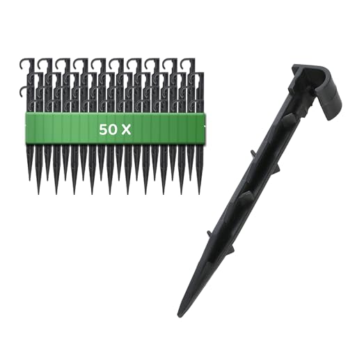 GARDENIX Lot de 50 ancrages de fixation pour tuyau d'arrosage - Piquet de terre - Diamètre : 16 mm - Fourche enfichable stable et incassable - Longue durée de vie - Ancrage au sol