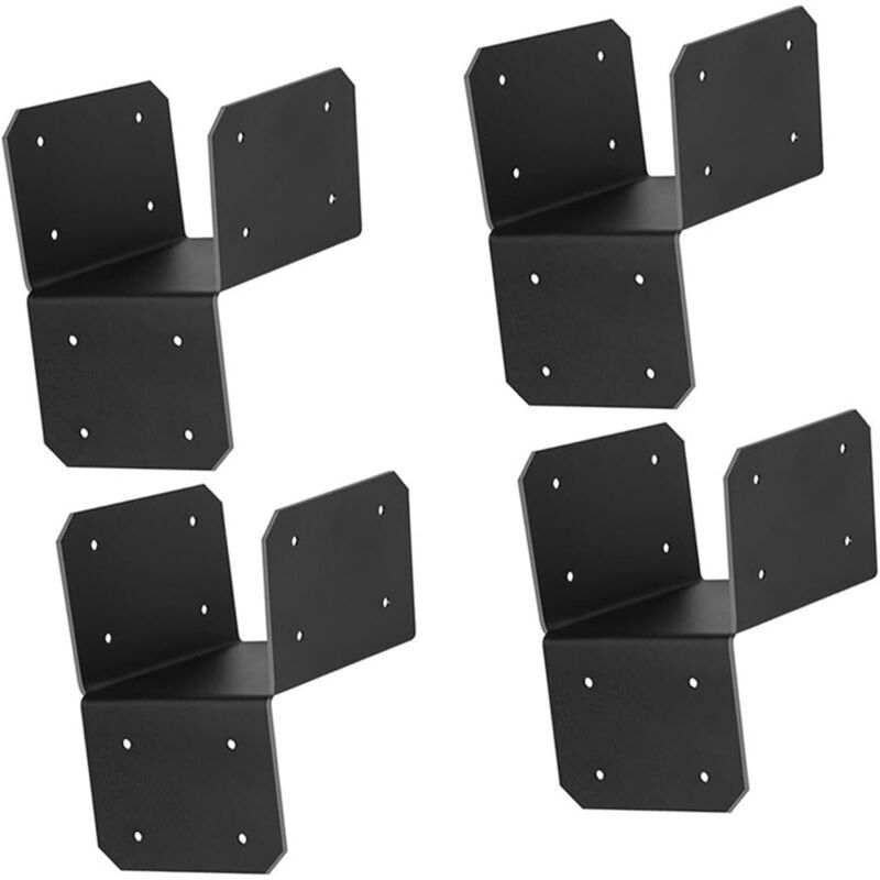 Homeponnew Lot de 4 supports de poteau de clôture en forme de U pour poteaux en bois de 10,2 x 10,2 cm – Support d'ancrage en béton avec trous pré-percés, construction en métal noir et fer
