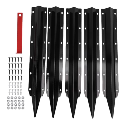 Piquets De Réparation De Poteau De Clôture – Piquet De Réparation De Clôture en Métal, Ancrage Fixe Robuste, Piquets De Support en Bois Inclinés en 5 Pièces, Poteaux Penchés Ou Cassés pour Jardin,
