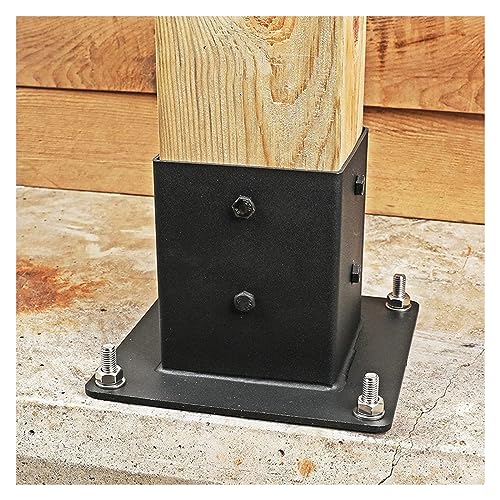 Homeponnew Lot de 4 supports d'ancrage réglables pour poteaux en bois, clôture et pergola, convient aux sols en béton, construction en fer noir de 127 mm avec trous pré-percés