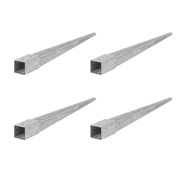 Manchon de sol à enfoncer 4 pièces support de poteau 50x50 L 600mm ancrage pour poteaux bois galvanisé à chaud ADGO