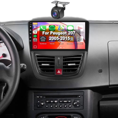 【8 Cœur 4+64G】 Hodozzy Carplay Android Auto Autoradio pour Peugeot 207 2006-2015,9 Pouce Touchsreen avec WiFi/GPS/RDS/FM/BT/USB/DSP+Caméra de Recul